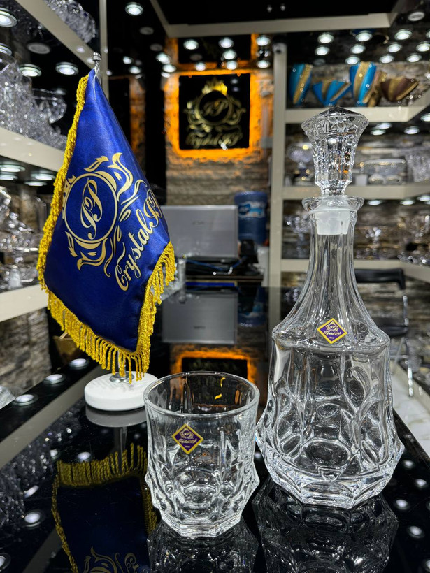 تنگ کریستالی به همراه درب کریستالی به اضافه ۶عدد نیم لیوان با بهترین بسته بندی مناسب هدیه