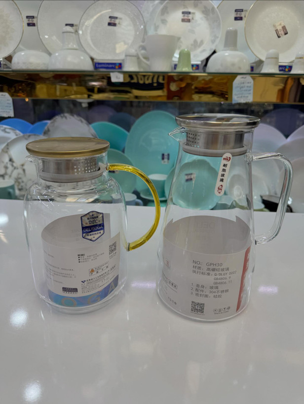 پارچ پیرکس درجه یک دسته رنگی تپول ساخت کشور چین