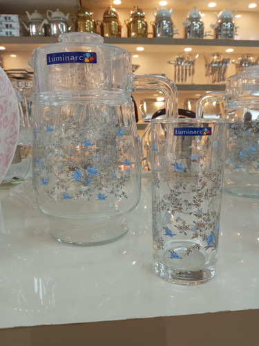 پارچ و لیوان بلور گل ابی لومینارک اصل فرانسه